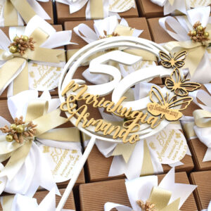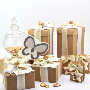 La presentazione della tua bomboniera matrimonio segue i più alti standard di eleganza e raffinatezza. Custodiamo con cura ogni oggetto in scatole eleganti di colore avorio o avana, tonalità perfette per comunicare lusso e sobrietà. Per il confezionamento utilizziamo esclusivamente nastri di pregio in seta, lino o pizzo, coordinati con precisione alla palette cromatica del tuo matrimonio. Per chiudere ogni singola confezione, applichiamo un tag personalizzato esterno dal design ricercato. Questo bigliettino riprende graficamente i vostri nomi e la data già incisi internamente sull’oggetto. È una coerenza stilistica assoluta che trasforma il tuo dono in un oggetto del desiderio per ogni invitato, curato con la precisione che solo un laboratorio artigianale può garantirti.