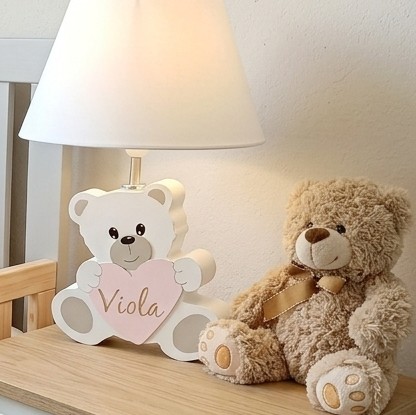 Inoltre, è possibile personalizzare il colore del cuore sulla pancia dell’orsetto scegliendo tra il Rosa e l’Azzurro. Di conseguenza, il prodotto si adatta perfettamente sia alla stanza di un bimbo che di una bimba. Per il funzionamento, è sufficiente inserire una lampadina (max 60 watt, esclusa) e collegarla alla rete elettrica.