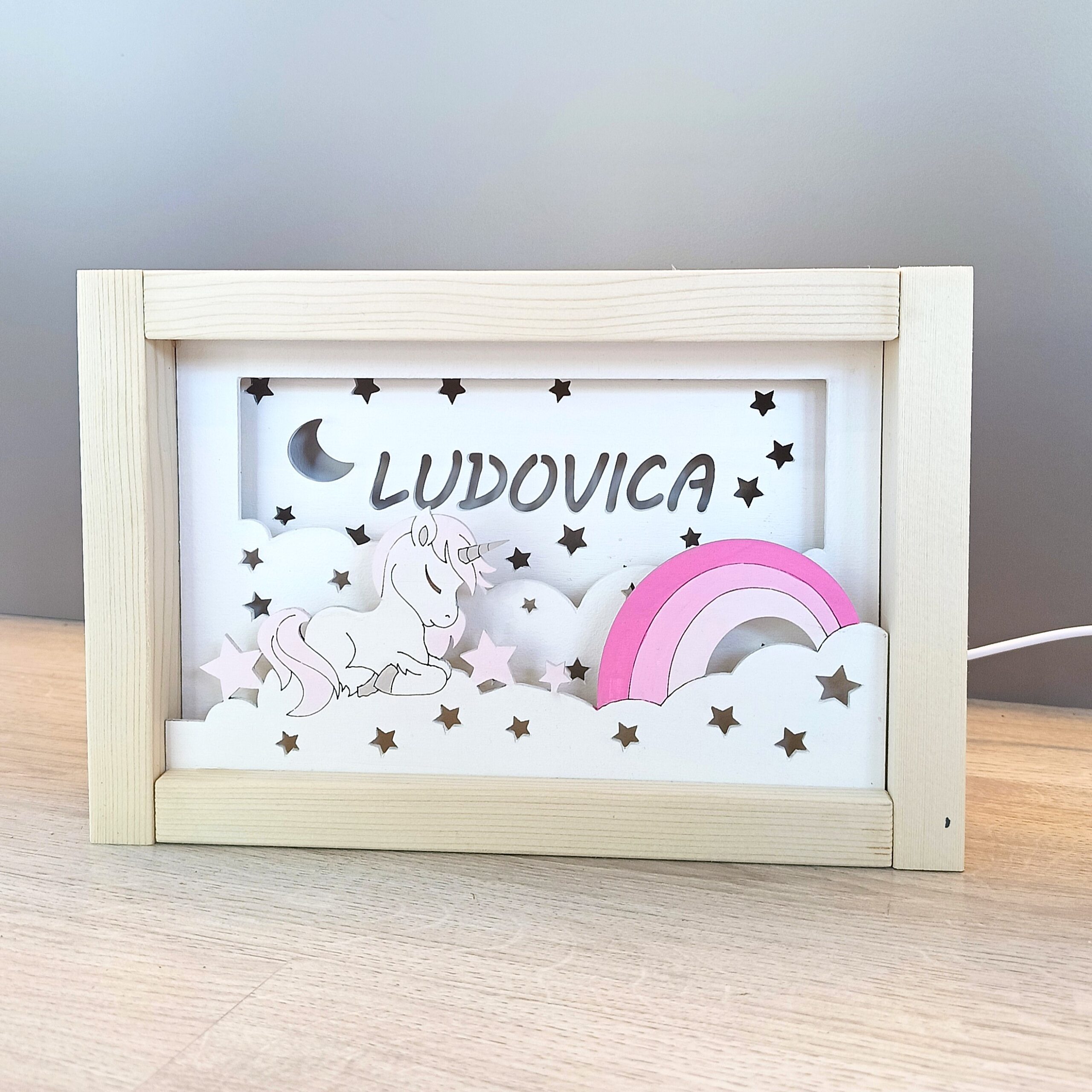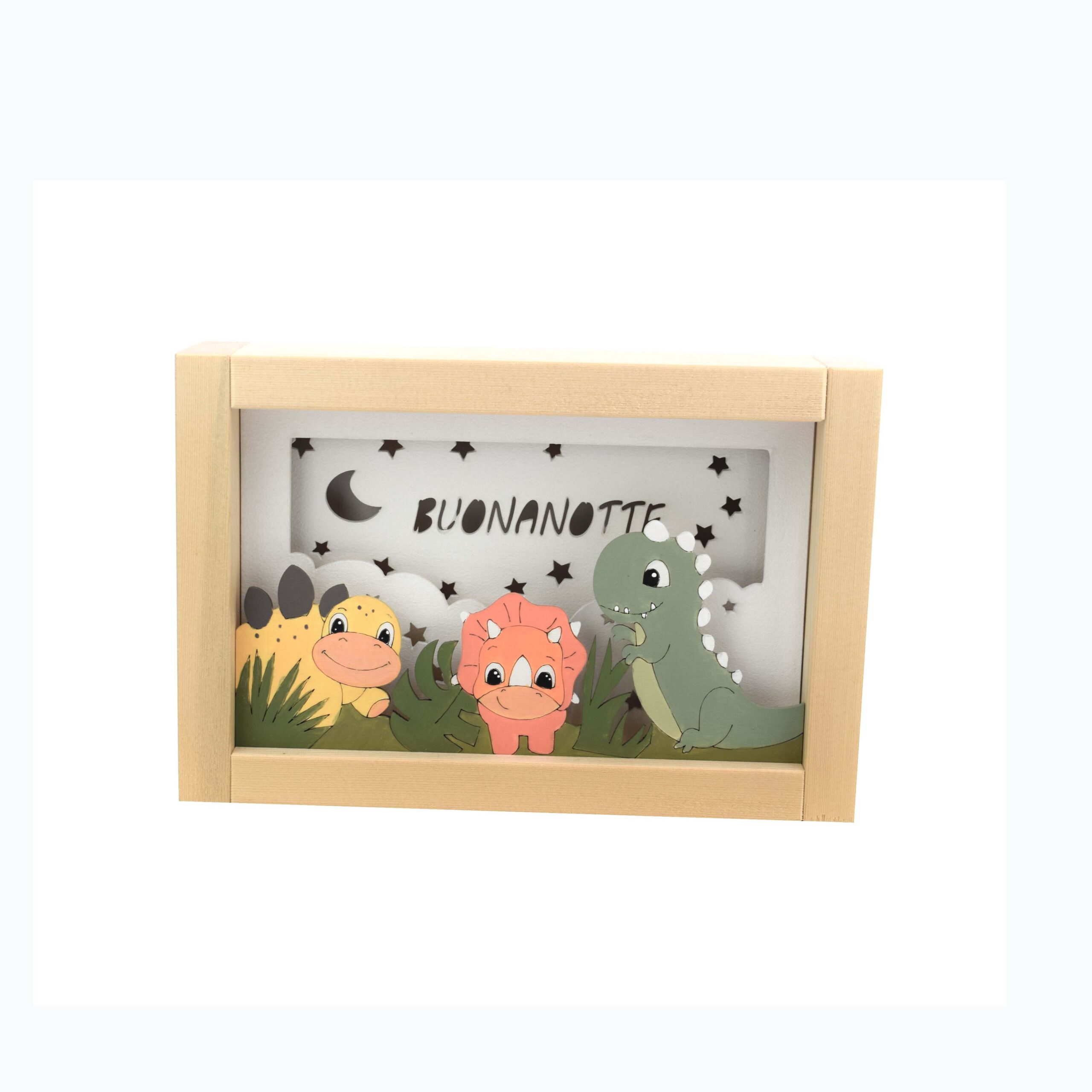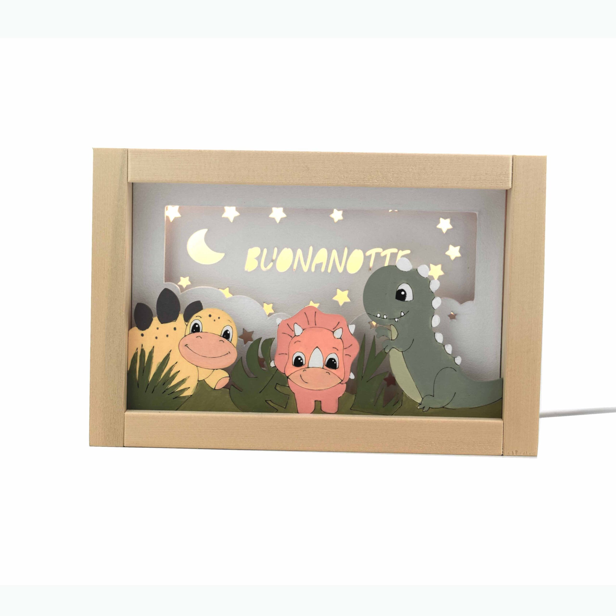 Accompagna il tuo bambino nel mondo dei sogni con la nostra luce notturna artigianale. Realizzata in legno naturale, diffonde una luce soffusa e rassicurante, perfetta per allontanare le paure del buio e creare un’atmosfera magica nella cameretta.