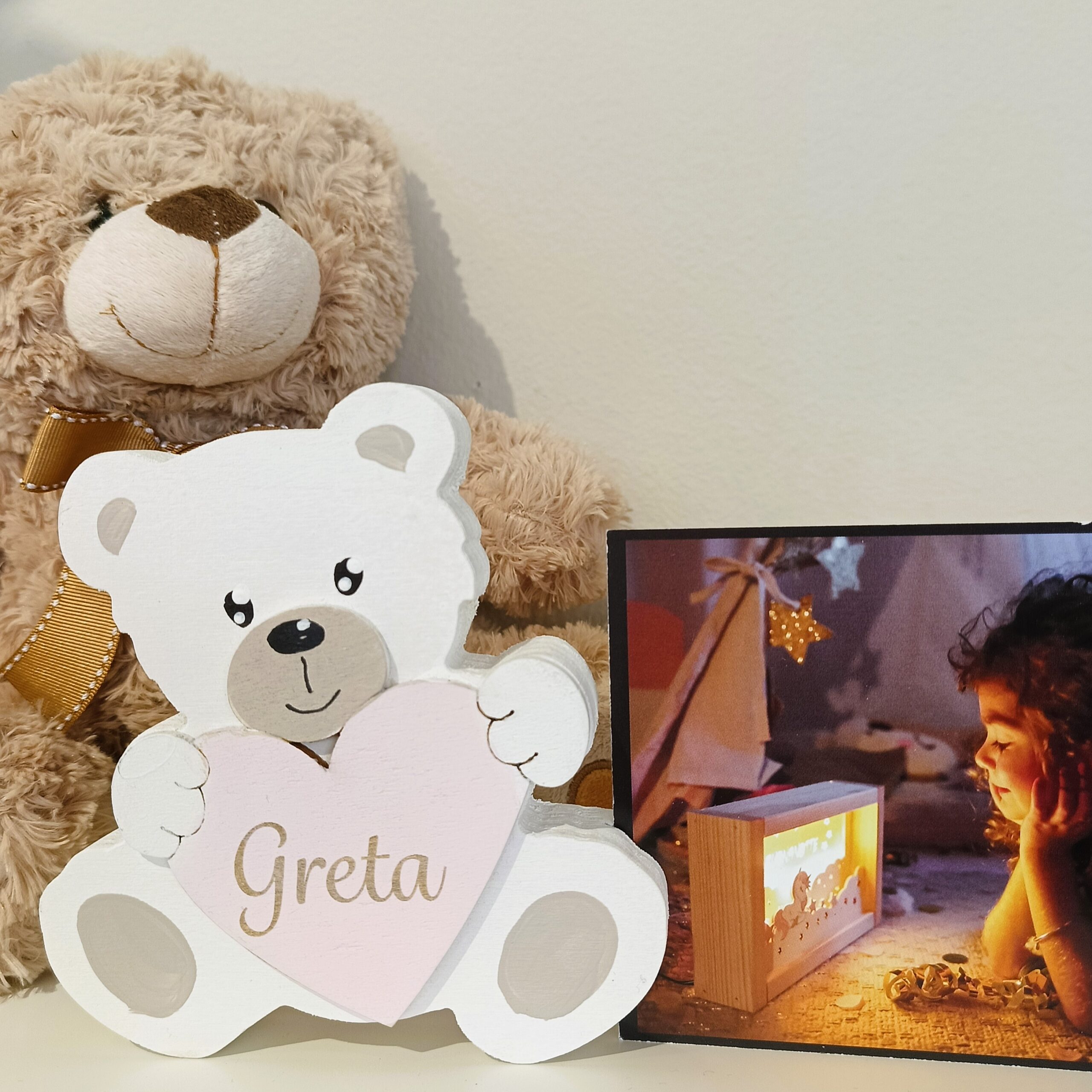 Ogni Portafoto Orsetto di Laboratorio19 è realizzato in legno di pioppo certificato, lavorata a traforo, colorata con colori all’acqua acrilici e rifinita con vernice opaca atossica, per garantire la massima durabilità e sicurezza del prodotto.