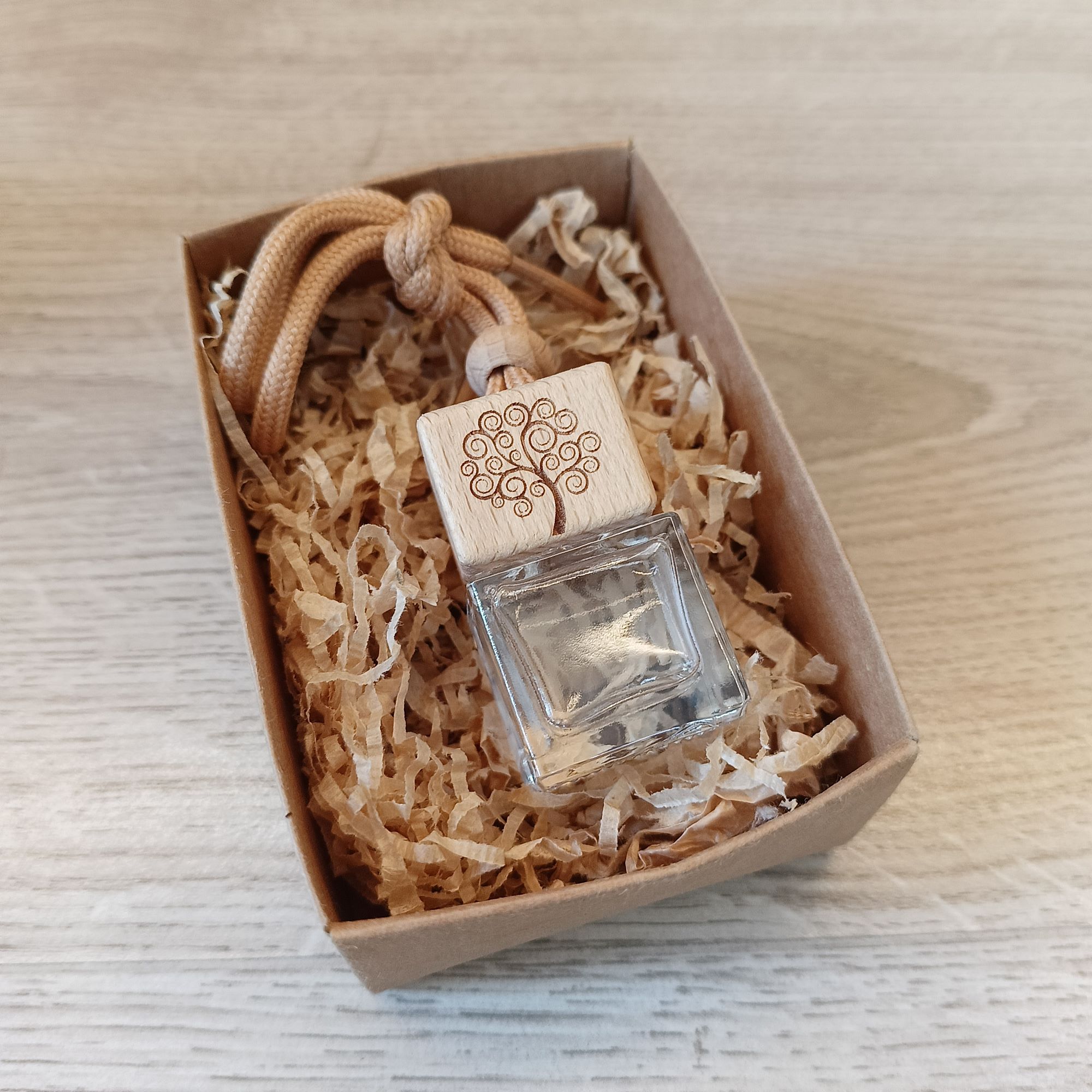 Il Profumatore Auto è realizzato in legno di faggio certificato e vetro. Completa l’oggetto il cordino che permette al profumatore di essere appeso.