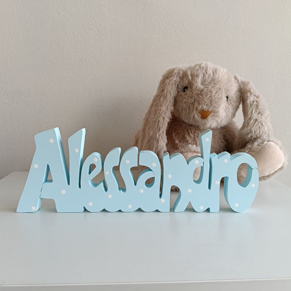 Ecco perché le nostre scritte in legno sono totalmente personalizzabili, dalla scritta al colore, fino alla decorazione a stelline o pois, ma sono anche realizzate in legno certificato e con colori atossici.