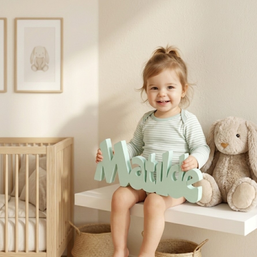 Le nostre scritte in legno personalizzate sono perfette per decorare la parete, la porta o una mensola della cameretta di un bambino. Personalizzano l’ambiente in modo delicato ed elegante, armonizzandosi con gli arredi preesistenti dal momento che possono essere realizzate in ben 12 tonalità.