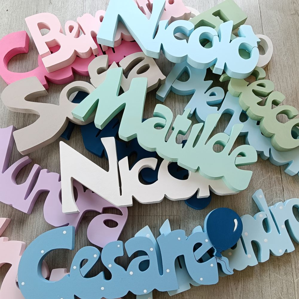 Le scritte colorate in legno sono assieme alle nostre cornici un regalo perfetto per un battesimo, una nascita o un compleanno, per far felici i genitori che potranno accogliere il bambino in una cameretta ancora più accogliente. Sono però anche molto apprezzati da bambini più grandi, che amano stare nella propria cameretta e renderla un luogo speciale, personale e, soprattutto, unico!
