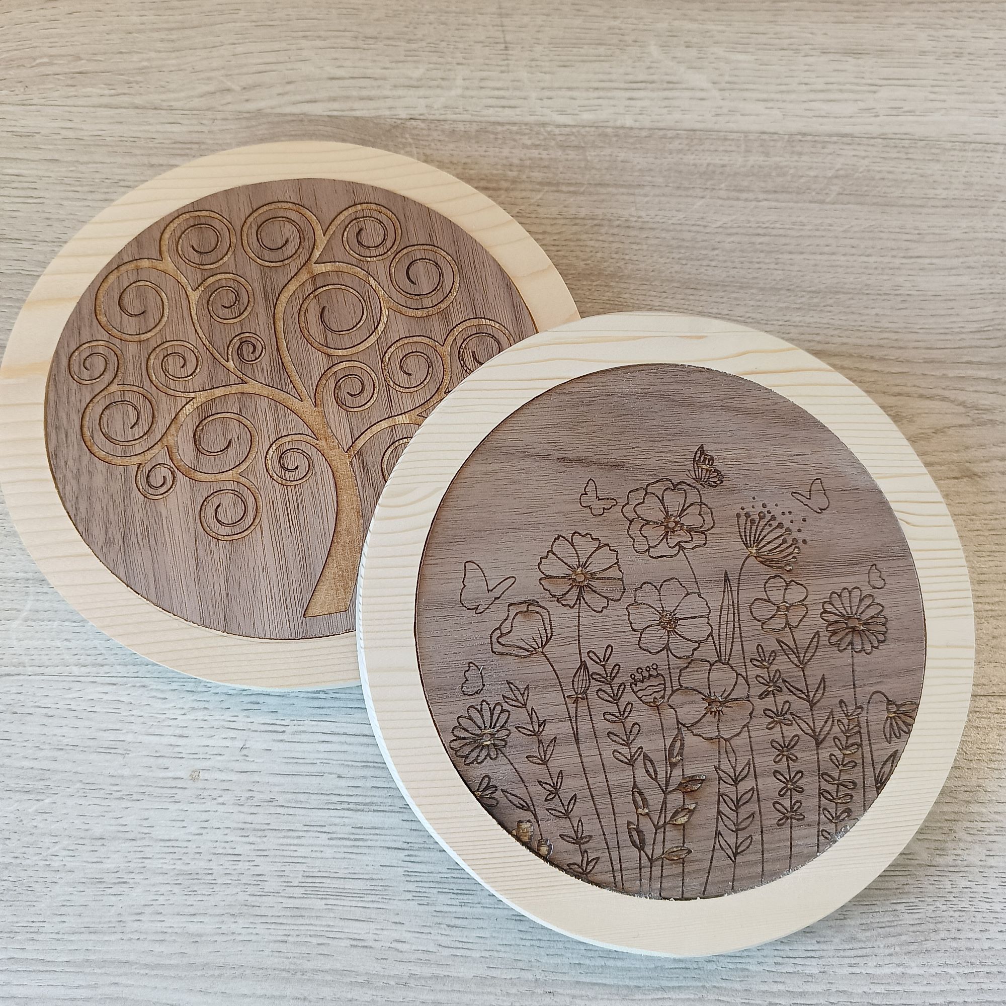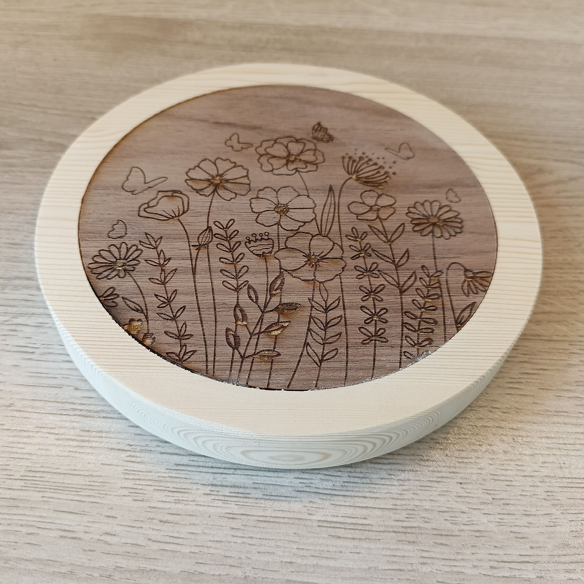 La bellezza del nostro sottopentola in legno personalizzato risiede nella purezza dei materiali. Non utilizziamo vernici coprenti, ma esaltiamo i colori naturali e caldi del legno di abete e noce. Il prodotto ha un diametro perfetto di 18 cm e uno spessore robusto di 1,9 cm, garantendo stabilità e isolamento termico ottimali. Essendo un prodotto naturale, ti ricordiamo che i colori e le venature possono variare leggermente rispetto alle immagini mostrate, a seconda della taratura del tuo schermo, ma la qualità e l’unicità di ogni pezzo sono sempre garantite.